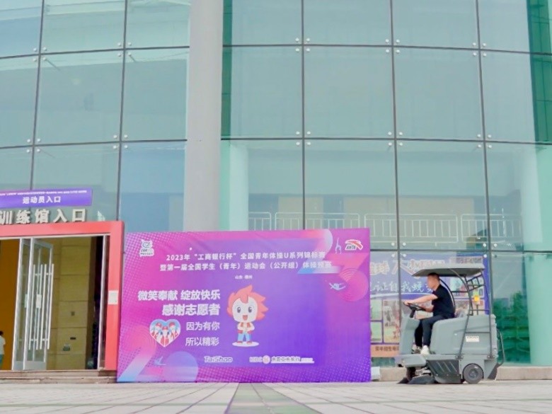 除了赛场,场馆保洁团队还使用卡赫清洁设备对场馆的公共区域进行清洁维护,致力于为到场观众们营造洁净舒适的观赛环境。在卡赫团队的指导下,工作人员使用卡赫驾驶式扫地车KM 130/130对场馆外广场进行清洁;此外,还定期使用卡赫高压清洗机HD 5/13,对场馆外台阶、地面进行快速冲洗,确保场馆时刻光洁如新。